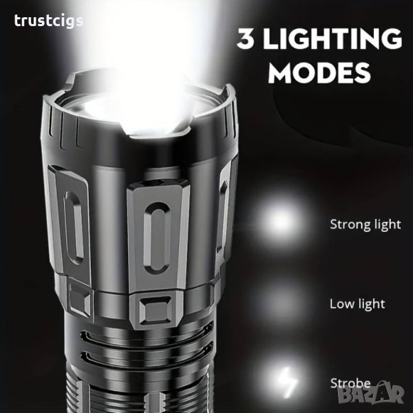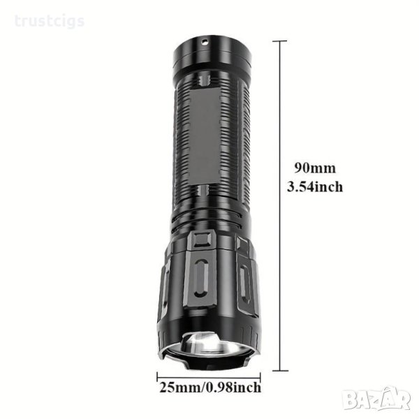 Мини мощен LED фенер с 3 режима и акумулаторна батерия