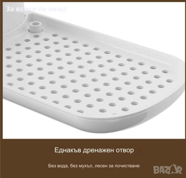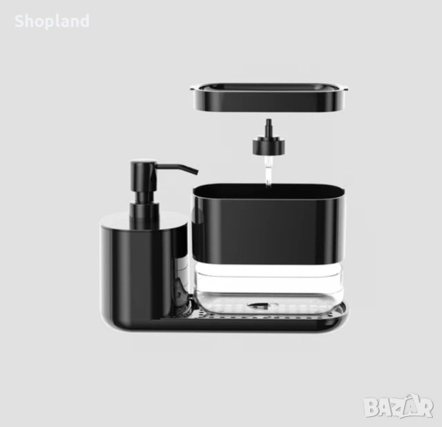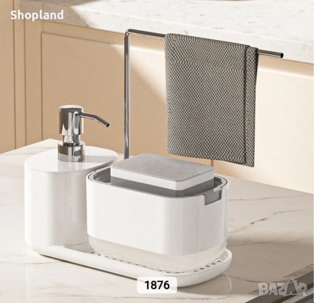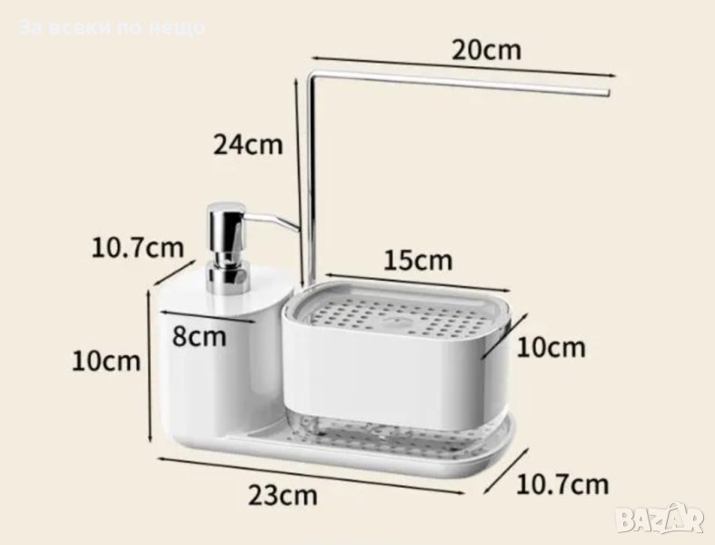 С неговата помощ ще можете да се насладите на удобството на лесното дозиране на сапуна, също така ще имате закачалка за кърпа, която ще ви помага да подсушавате ръцете си по удобен начин, а поставката за гъбата ще подсигури, място на вашата гъба.