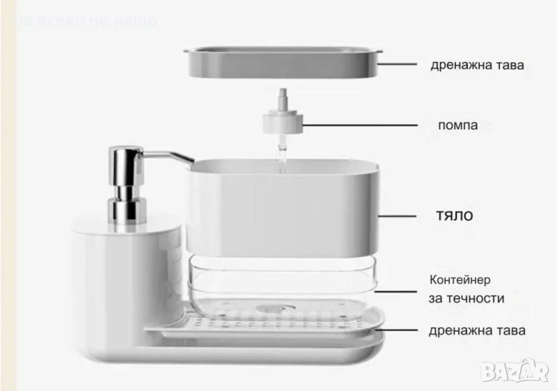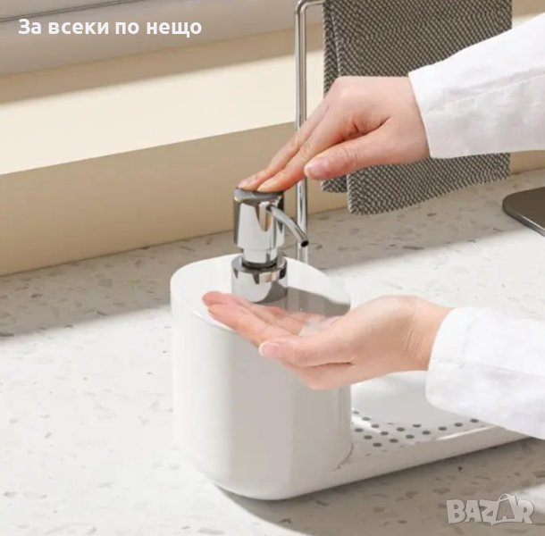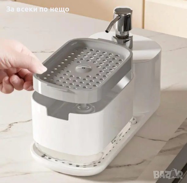 Дозаторът за сапун 3в1 представлява удобен и практичен начин за поддържане на хигиената в кухнята. Този продукт предлага три в едно функции - дозатор за сапун, закачалка за кърпа и поставка за гъба.