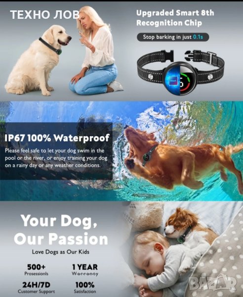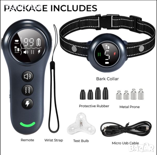 нашийник против лай. ОБХВАТ до 500М презареждащ с литиево ионни батерии .