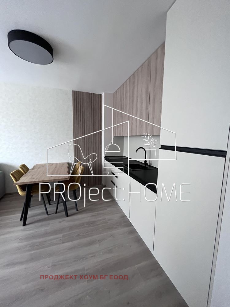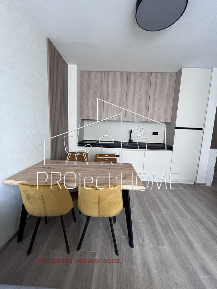 Апартаментът се състои от антре и санитарен възел, светъл хол с кухня и трапезария, спалня и тераса. Издава се обзаведен с нови мебели и монтирана кухня. Жилището се намира в затворен комплекс с басейн, контролиран достъп и зелени площи. Таксата поддръжка е 12 на кв.м. Сградата е с акт 16 и отделни партиди за битов ток и вода.
