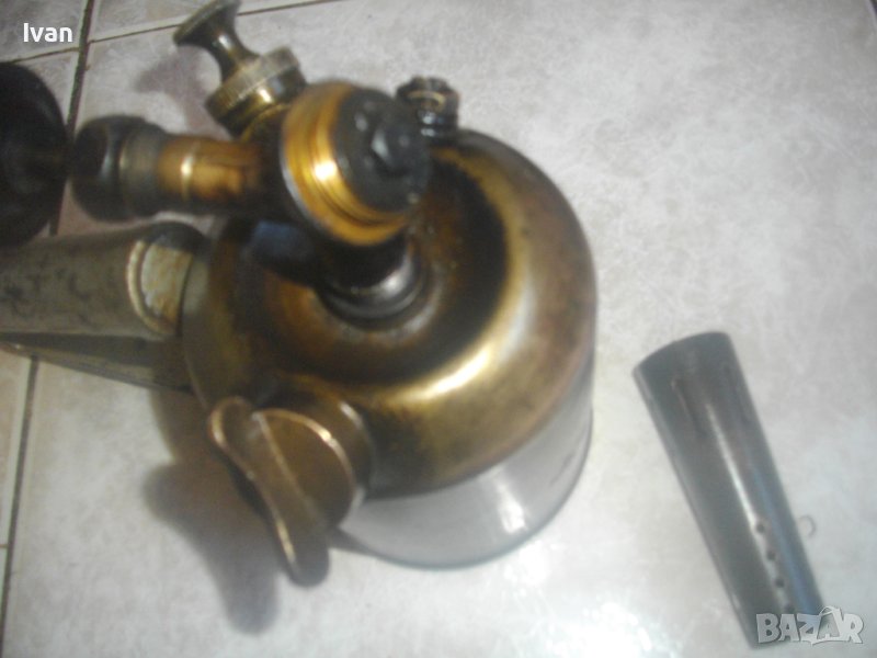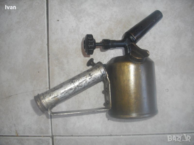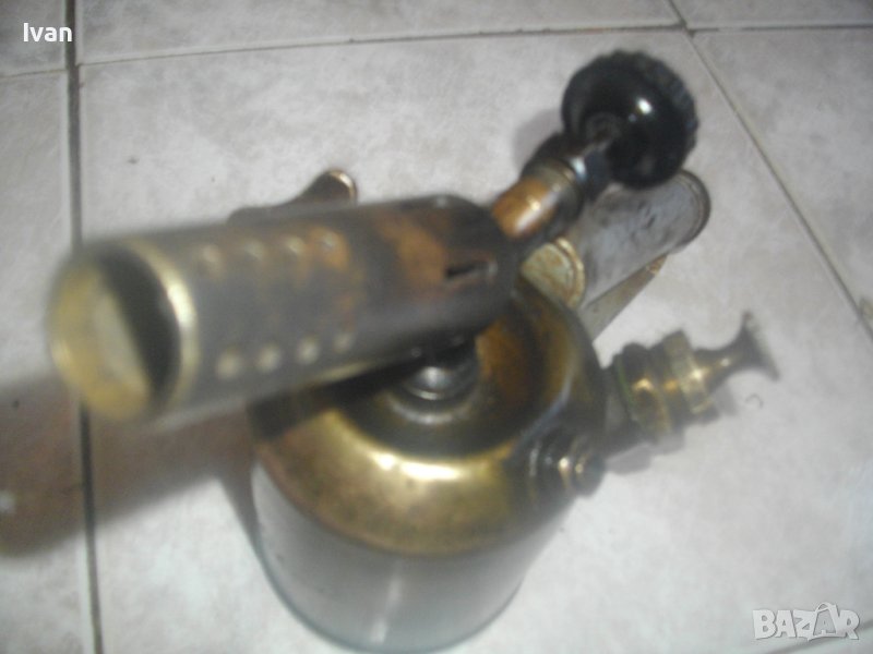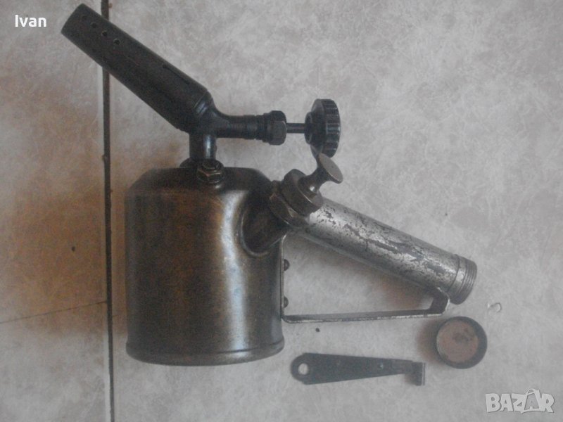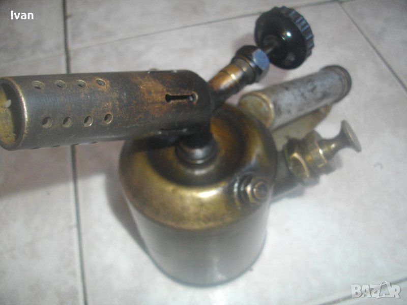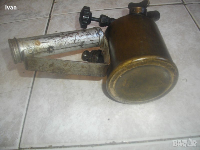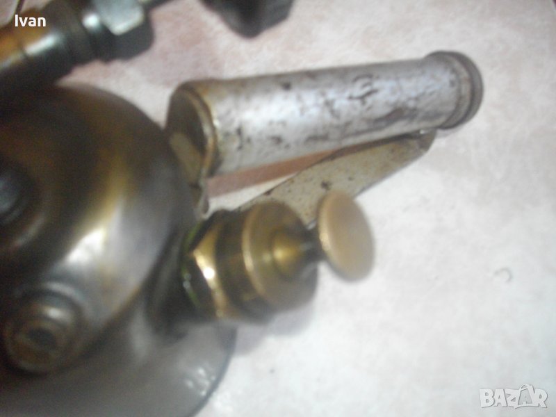 ОПИСАНИЕ на мини бензинова лампа френска, по-голямата. Цена 129 лв. Старо френско качество и производство , с маркировки. В пълно и отлично работно техническо състояние. Пълна е с бензин за проба и тест. Марка Lahnel, маркирано с големи ръкописни букви отпред на резервоара на лампата. Регулация спирателен кран отзад с бакелитов върток. Масивна, изцяло бронзова. С желязна дръжка куха за съхранение на различни неща. Метална капачка на дръжката. В нея е наличен оригинален малък ключ за лампата. Отпред лампата е с масивна дюза тип горелка от плътен дебел бронз диаметър ф 20 мм. Вместимост на резервоара 0,5 л. Височина на лампата - 19 см, ширина - 20 см, диаметър ф 85 мм. Маркировка голяма отпред. Много запазен външен вид. С помпичка за напомпване на горивото в резервоара.Горелката е въздигната нагоре за пламъка. Тегло на лампата - 0,8 кг.