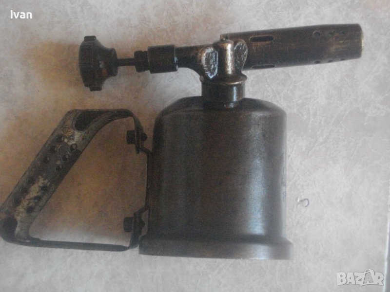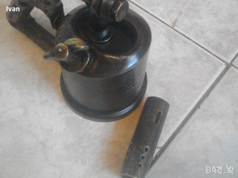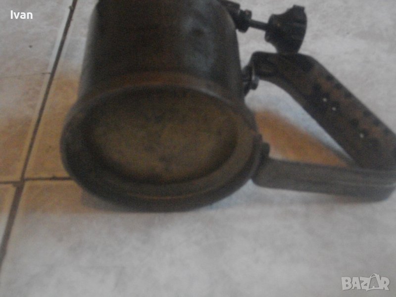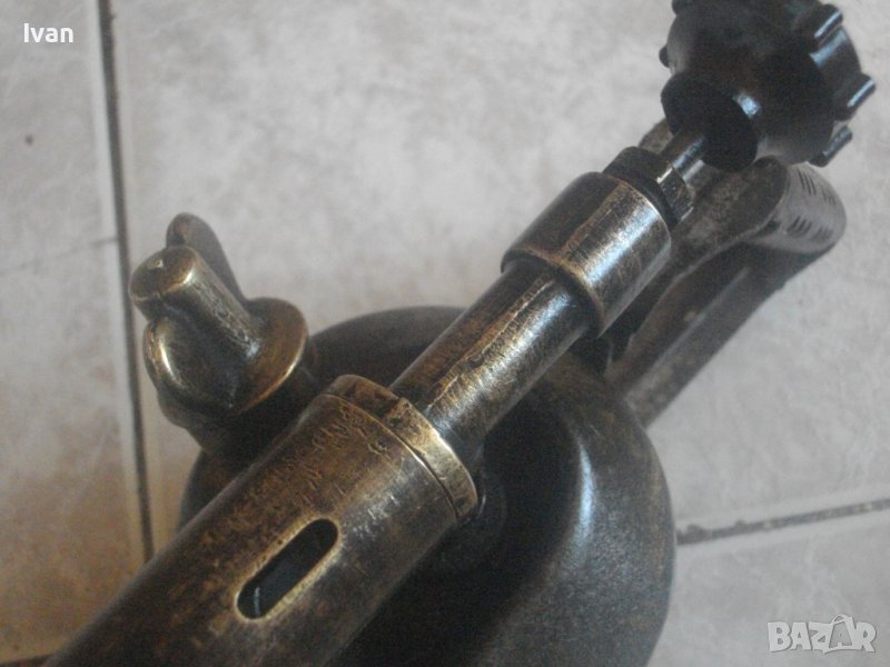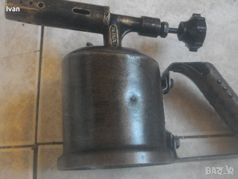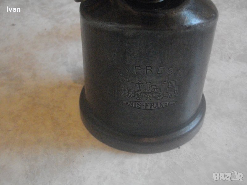 ОПИСАНИЕ на мини бензинова лампа EXPRESS 41T - Unis FRANCE. Цена 129 лв. Колекционерска, старо френско качество, рядък модел, маркирана на няколко места. Годна за употреба или за декорация в интериора, също и за колекции. Марка и модел EXPRESS 41 T - Unis FRANCE.Отпред маркировката е с голямо лого на локомотив. Размери на лампата - височина 14,5 см, ширина - 17 см, диаметър ф90мм. Масивна, бронзова ицяло, с метална дръжка и малка алуминиева табела с маркировката също на дръжката. Глава на лампата към горелката - също масивна брнзова, с маркировка на марката. Горелката е масивна, бронзова, плътна, насочена право напред, без да е въздигната нагоре. Диаметър горелка - ф20мм. Регулация спирателн кран бакелит върток. Лампата е без помпичка за напомпване на горивото в резервоара. Вместимост резервоар - 0,5 л. Капачка резервоар - бронз масивна. Тегло на горелка празна - 0,8 кг. Много запазен външен вид н лампата и отлично работно техническо състояние.