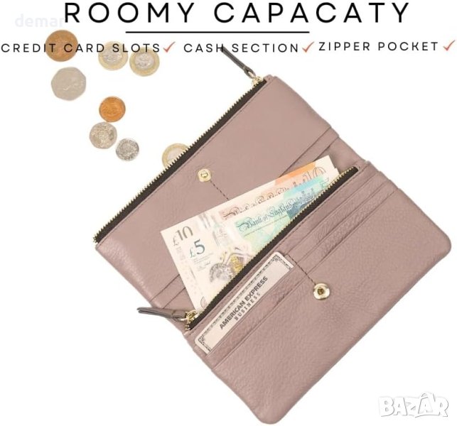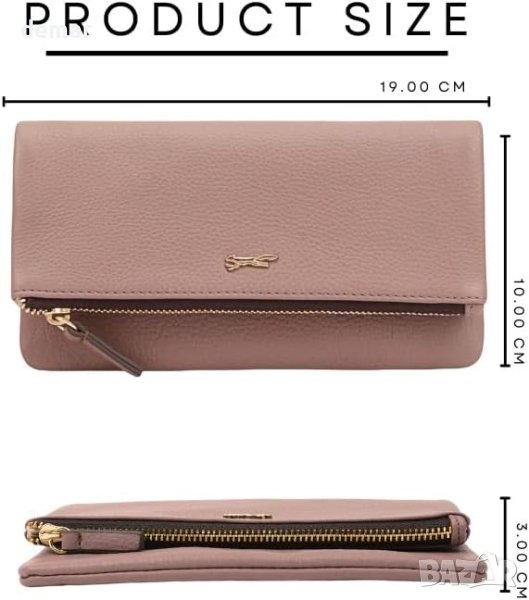 PAUL COSTELLOE Дамско кожено портмоне от естествена кожа с много слота и джобове, пепеляво лилаво