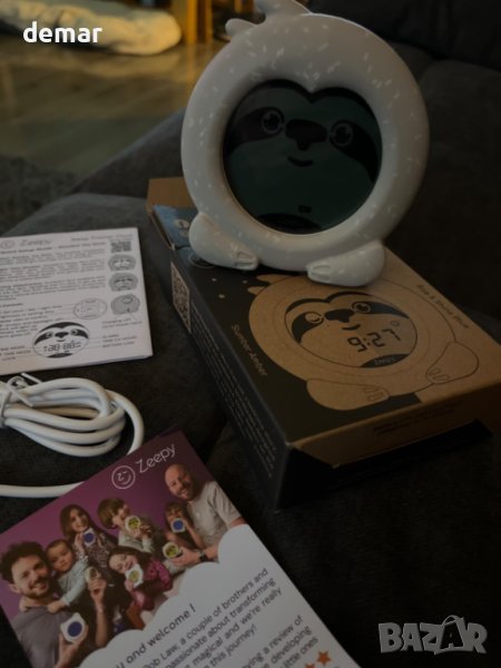 Zeepy Toddler USB акумулаторен сладък детски будилник котето Кип с нощна лампа, устойчив на падане