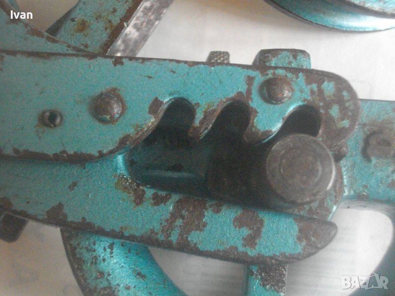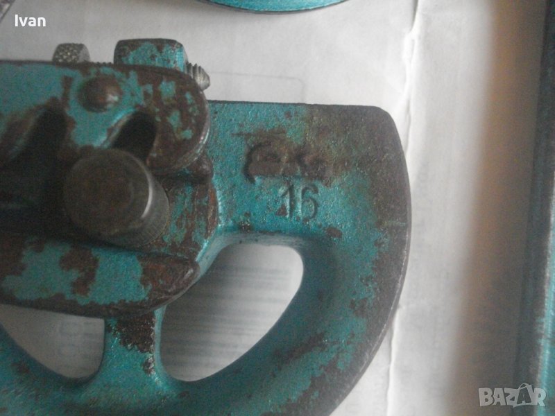 ОПИСАНИЕ на син тръбогиб с 2 глави размер 15 мм и 16 мм. Цена 399 лв. Твърда цена/без коментар. Инструмента е уред за огъване на всякакви тръби, включително и твърди метални и е от старото качество инструменти от стария материал. Плътно масивно желязо, не кухо. Тръбогиа е висок клас производство, има възможност за регулация в 3 различни положения на радиуса на огъване посредством прехвърляне на захват от главата. Радиус положения огъване 45 мм - 40 мм - 35 мм. Дължина на тръбогиба - 40 см, ширина - 13 см. Тегло - 3,0 кг. Сменяеми глави към него - глава размер огъване 15 мм и глава размер огъване 16 мм. Инструмента е изцяло от масивно плътно желязо, предназначен за тежки натоварвания. Немска старо качество производство. Маркировки/марка/модел - DAKO 24305. Вграден метален водач на дръжките. РАЗПОЛАГАМ с други различни нови и ползвани ръчни тръбогиби, различни размери до 22/26 мм, на различни цени.