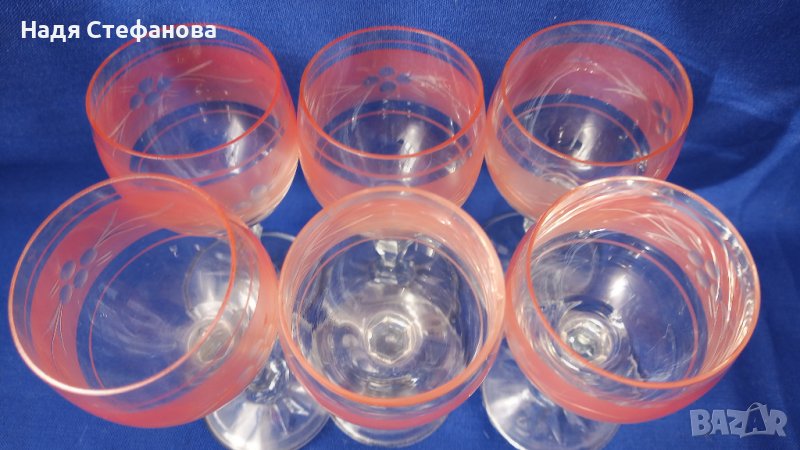 Прочетете моля много внимателно поясненията към обявата. Ако след прочитането нещо все пак не е изяснено, задавайте въпросите си тук чрез съобщение или на посочения телефонен номер. По принцип през деня съм в движение и е по-сигурно да мога да отговоря по телефона след 18 ч. При изменение редактирам обявата навреме. Ако направо харесвате нещо от обявата, директно може да го поръчате. Красиви, тънкостенни, нежни чаши от едно време. Не са ползвани и нямат никакви забележки. Цената на тези 6 бр е 48 лв. При желание имам допълнително няколко броя, като цената е 10 лв/бр. По един два броя цената е 13 лв/бр, Изпращам добре опаковано от мен по Еконт с опция преглед и евентуално тест преди да се плати. НЕ ИЗПРАЩАМ ПО СПИДИ!!! Куриерската услуга е