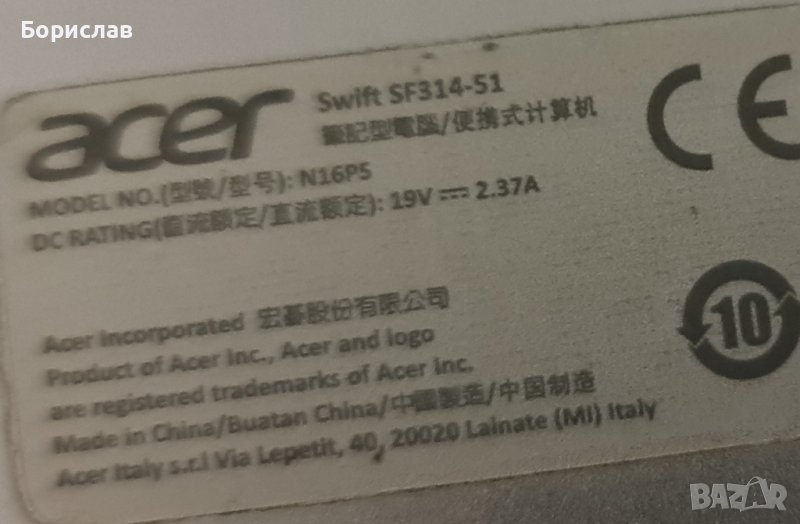 acer swift 3 sf314-51  работещ на части , снимка 1 - Части за лаптопи - 44498324  acer swift 3 sf314-51  работещ на части , снимка 2 - Части за лаптопи - 44498324  acer swift 3 sf314-51  работещ на части , снимка 3 - Части за лаптопи - 44498324  acer swift 3 sf314-51  работещ на части , снимка 4 - Части за лаптопи - 44498324  acer swift 3 sf314-51  работещ на части , снимка 5 - Части за лаптопи - 44498324  acer swift 3 sf314-51  работещ на части , снимка 6 - Части за лаптопи - 44498324  acer swift 3 sf314-51  работещ на части , снимка 7 - Части за лаптопи - 44498324  acer swift 3 sf314-51  работещ на части , снимка 8 - Части за лаптопи - 44498324 1/8