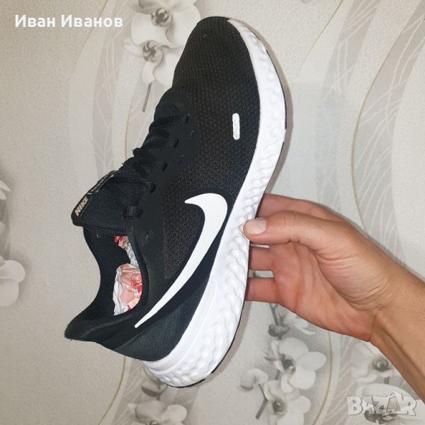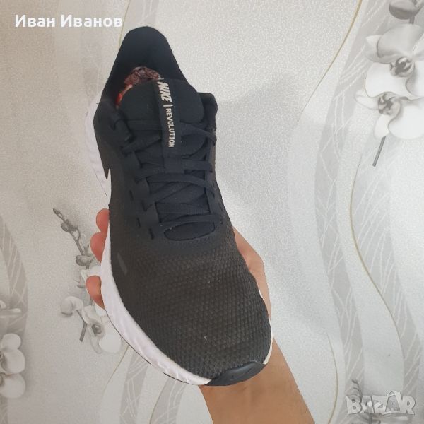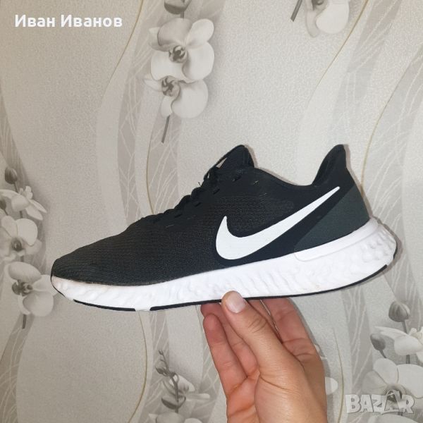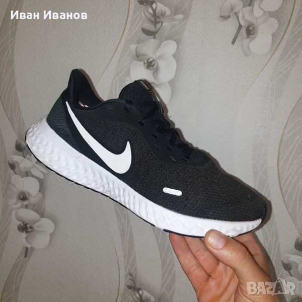 Маратонки Nike Revolution 5 номер 42 по етикет Малко използвани , без следи и без забележки . Супер леки и удобни черни мъжки маратонки Nike от серията Revolution, изработени от висококачествени текстилни материали. Материята осигурява отлична вентилация и комфорт на стъпалата. Маратонките се закопчават с връзки, имат лого на марката от външната страна, както и светлоотразителни елементи. Гумената подметка е устойчива на износване и осигурява нужното сцепление и стабилност. Подходящи са както за ежедневно носене, така и за спорт. Много добре се съчетават с дънки или спортно долнище. Маратонки NIKE REVOLUTION 5 са комфортно спортно предложение на марката. Подходящи са за ежедневно носене и за спорт. Изработени са от високо функционални и здрави мрежести материали , комбинирани с различни видове омекотяващи елементи , който предлагат стабилна основа за краката и ставите. Междинната подметка е изработена от мека пяна , която гарантира гладко и стабилно усещане за движение. Частите около петите са допълнително подсилени. Леката плетена материя обгръща крака за удобно и проветриво прилягане. Подсилената пета и детайлите по външната страна осигуряват опора и издръжливост. Междинната подметка от мека пяна осигурява равномерна и стабилна походка. Разполага с релефна външна стена за намаляване теглото на обувката. Здраво, гъвкаво сцепление Външната подметка от каучук осигурява здраво сцепление върху различни повърхности. Каналите в подметката позволяват на стъпалото да се сгъва по естествен начин.