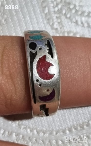 Винтидж сребърен пръстен с индиански разказвач , печати запазени, автентичен