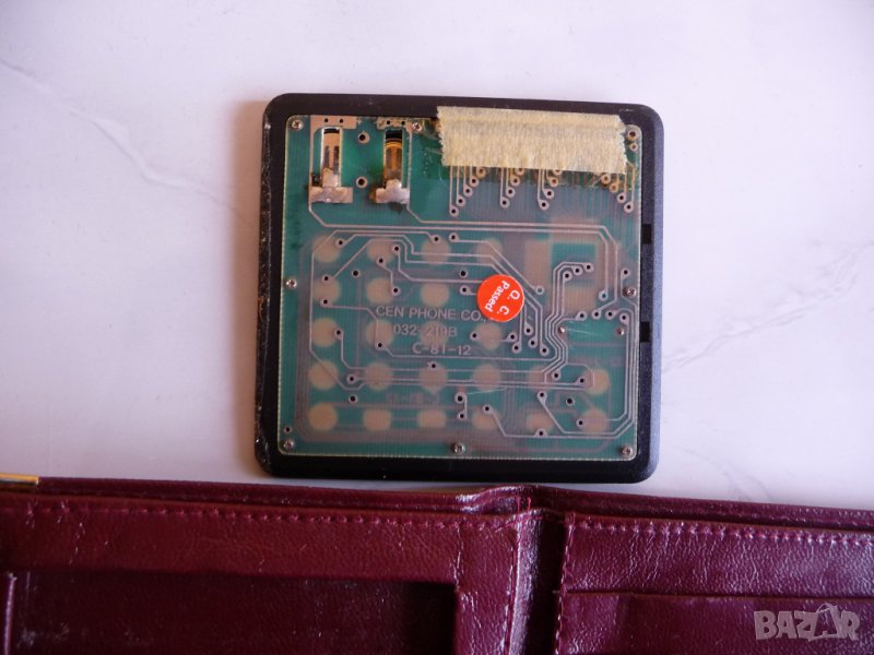 Стар кожен портфейл с монтиран калкулатор в него.