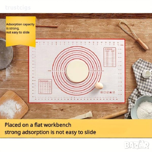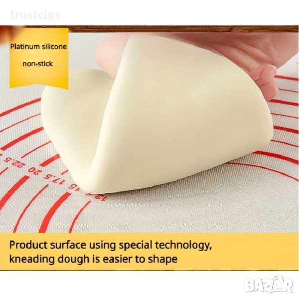 Подложката е с незалепващо покритие, което предотвратява залепването на тестото. Това прави месенето и оформянето на тестото много по-лесно и удобно.
