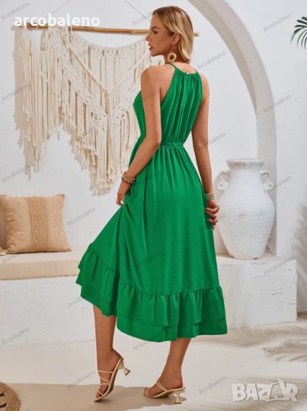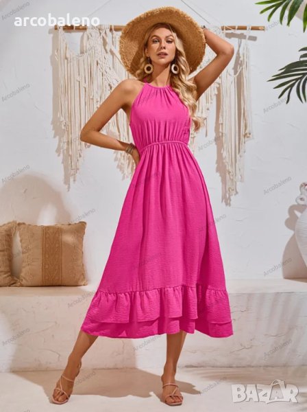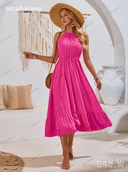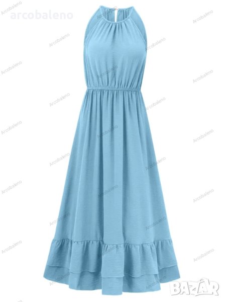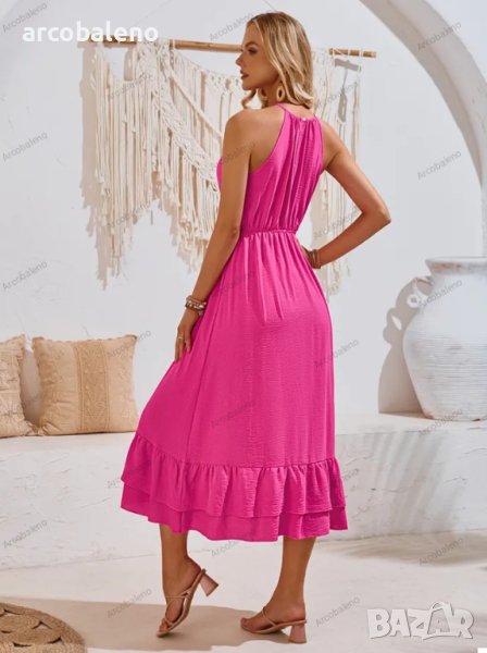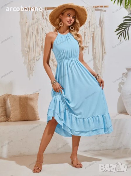 Нова празнична едноцветна рокля с V-образно деколте и талия без ръкави, 3цвята