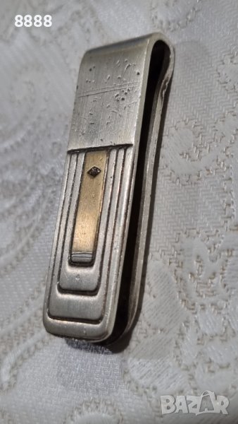 Сребърна щипка за пари с произход Италия . Щипката е 925 проба с налични щампи и 750 проба злато на лицето