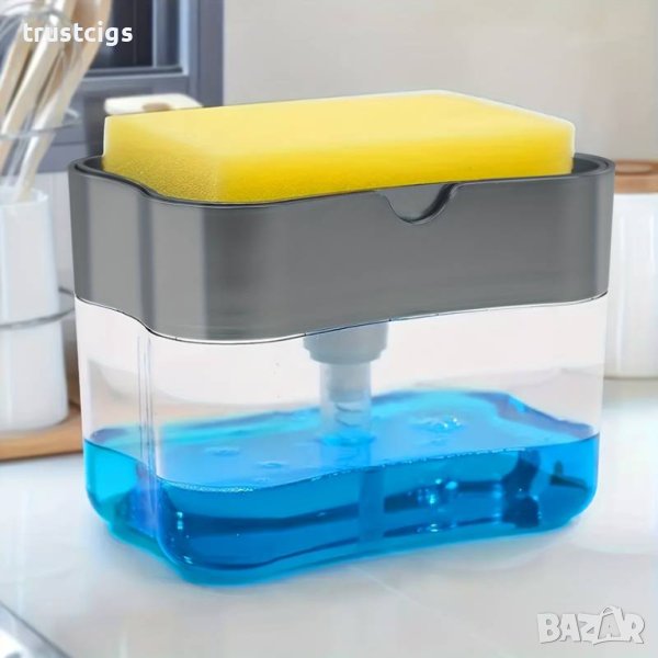 Дозаторът и поставката за гъба в едно ви осигуряват гъба, винаги напоена и готова за бързо и ефективно почистване на съдове.