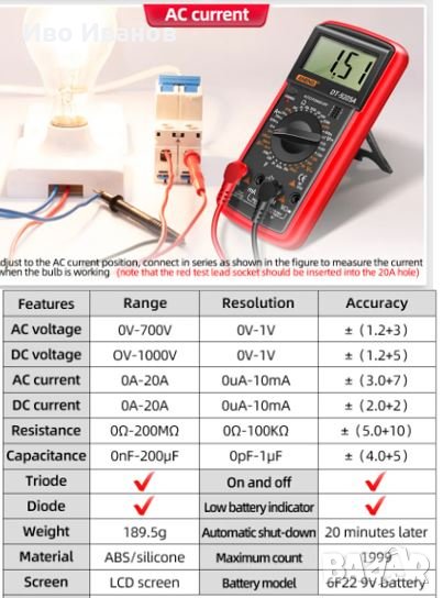 Цифровия мултиметър DT9205M е пълнофункционален уред, прост за