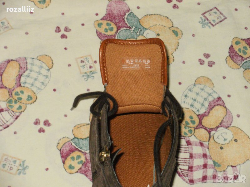 Кецовете са на TIMBERLAND, оригинални, носени малко, без следи, като нови. По номер са 32, дължина на стелката-20,5см. (мерена от мен). Цвета е като на снимките, шоколадово кафяво. Материята е естествена кожа (набук). Отстрани са с малък цип.