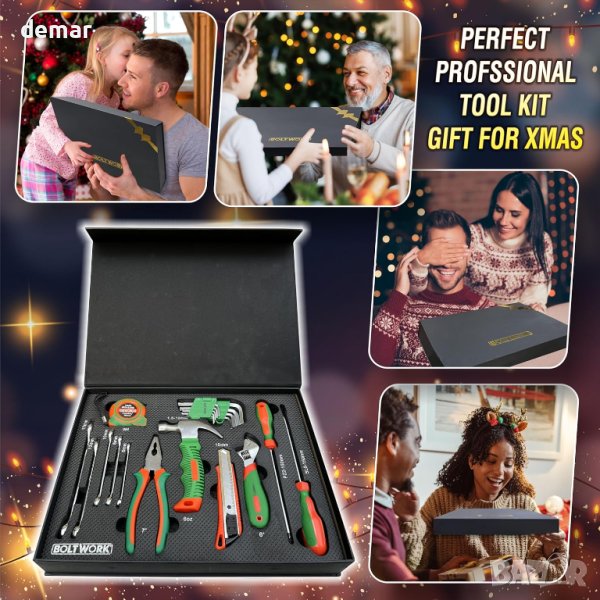 Този първокласен комплект инструменти е идеалният подарък за различни поводи, включително Коледа, рождени дни, Ден на съпруга, Свети Валентин, Ден на бащата и др. Това е перфектен избор както за мъже, така и за жени, особено за ентусиастите „Направи си сам“, които ценят наличието на изчерпателен набор от инструменти у дома или на работното място. Всеки комплект инструменти се доставя елегантно опакован в красива подаръчна кутия, която гарантира, че инструментите остават безопасни, чисти и добре организирани, независимо дали се съхраняват в барака или у дома. Инструментите са спретнато подредени в професионална EVA тава, проектирана да пасва безпроблемно в шкафовете за инструменти за лесен достъп. Изработени по най-високите стандарти, тези издръжливи инструменти са подходящи за професионална употреба от механици и водопроводчици, както и за различни задачи „направи си сам“ около къщата, колата, поддръжката на мотоциклети и други, което ги прави идеален пълнител за чорапи или грижовен подарък за всеки специален повод.