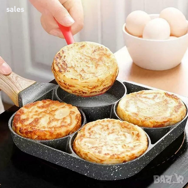 ✔️Пригответе до четири различни ястия едновременно с този универсален тиган, идеален за приготвяне на закуска за цялото семейство. Той е подходящ за приготвяне на омлети, задушаване на зеленчуци или пък за печене на по-малки парчета месо.