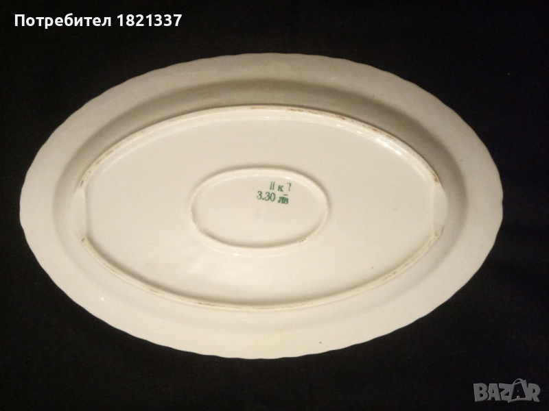 Голяма порцеланова чиния Китка С овална форма, от социализма Размери: дължина 36 см, ширина 23 см, височина 4 см.