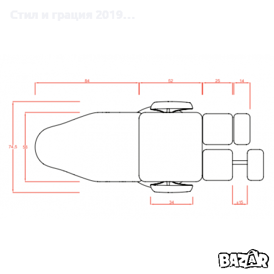 Стол за педикюр Sol 182 х 56/74,5 х 56/67 см