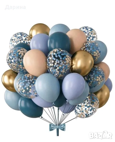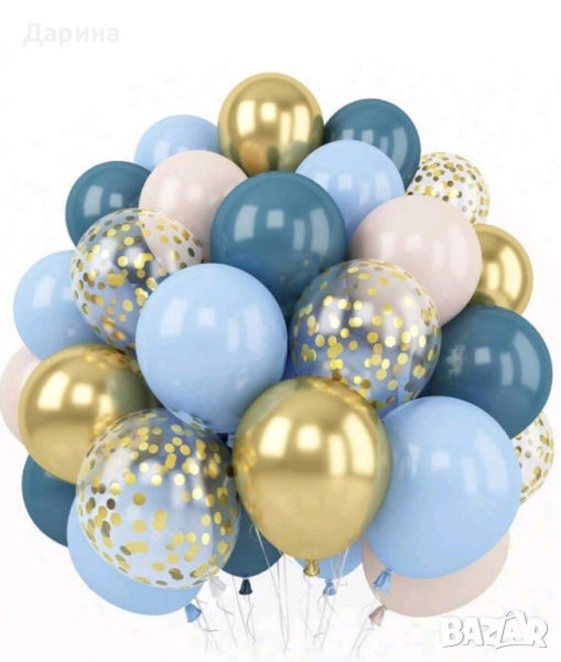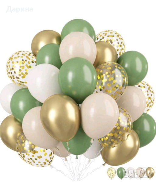 Красиви сетове от латексови балони 30см + прозрачни лат.балони с конфети: 1. Цвят розов металик , златно и бяло к-т от 15бр. - 11лв/5.62€ или к-т от 30бр. - 22лв./ 11.25€. 2. Цвят златно и синьо к-т 25бр. - 20лв. / 10.23€. 3. Цвят златно, розово и бяло к-т 20бр. - 17лв./8.69€. 4. Цвят златно и зелено к-т 25бр.- 20лв. /10.23€. 5. Цвят златно и бяло к-т от 18бр.- 15лв. /7.67€. Бели,черни, червени, лилави, сини латексови балони к-т от 10бр. - 5лв./2.56€. Нови. Банер ,,Happy Birthday" - 8лв. /4.09€. Ресни 1/2м. - 8лв. /4.09€. /цвят: зелен, червен, златен, розов, лилав и син/