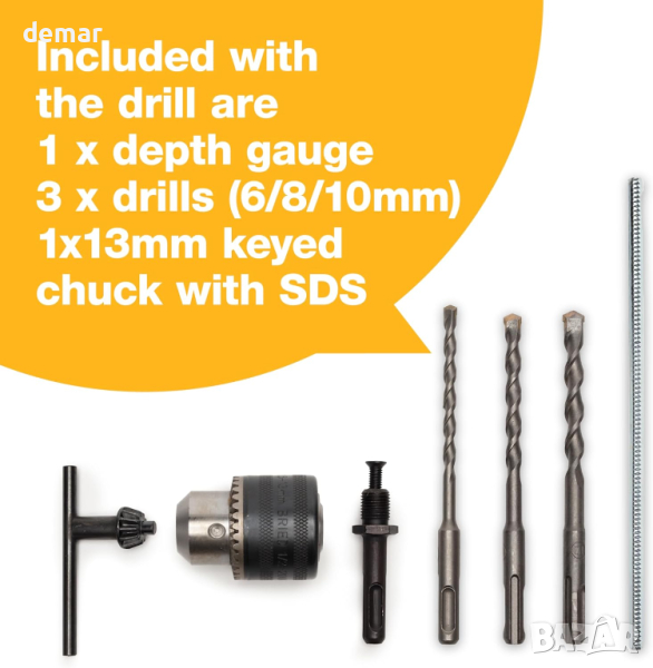 Универсална ръчна електрическа бормашина, проектирана да рационализира вашите домашни проекти „Направи си сам“ без усилие. С мощен 620 W двигател с променлива скорост и 3 режима (стандартен, чук, рото-стоп удар), тя се справя с лекота със задачи от дърво до бетон. Насладете се на спокойствие с нейния здрав захранващ кабел и издръжлив SDS 13 mm патронник с ключ. Лека и ергономична, тя предлага пълен контрол с регулируема дръжка на 360 и включва SDS TCT свредла за ефективно пробиване. Надстройте своя набор от инструменти днес за ефективни и удобни инсталации.