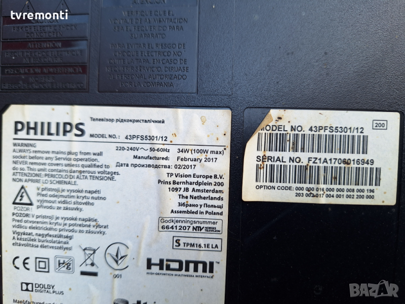 POWER BOARD ,715G7574-P01-000-002M, for 43inc for PHILIPS 43PFS5301 DISPLAY TPVTPT430H3-DUYSHA.GREV.S1AG борда е гарантирано работещ Демонтиран от Телевизор PHILIPS модел 43PFS5301 със счупен дисплей TPVTPT430H3-DUYSHA.GREV.S1AG тесвана от нашия техник