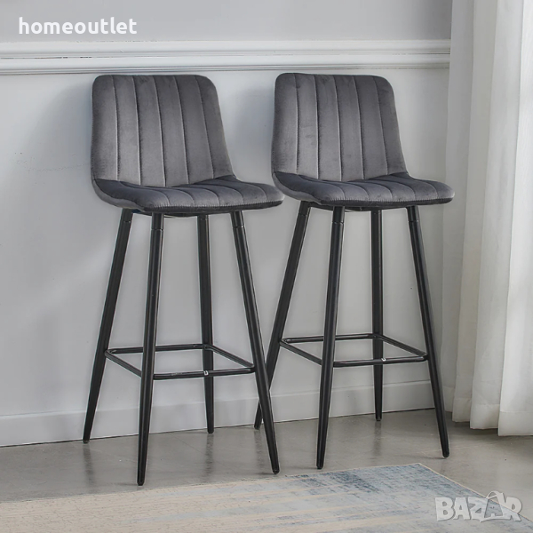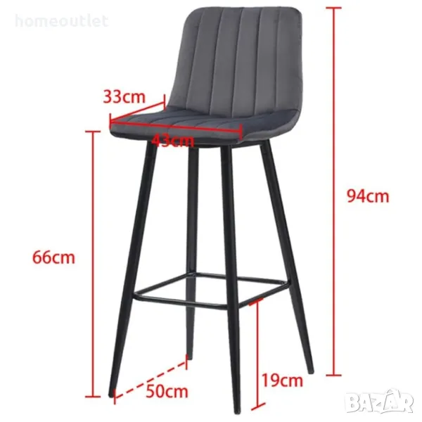 Високите столове са подсилени с черни метални крака, за да осигурят безопасността и стабилността на продукта.