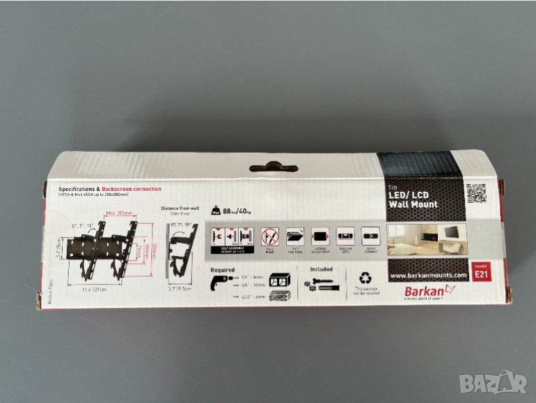Съвпада с телевизори VESA съвместимост 75x75, 100x100, 100x200, 200x100, 200x200 mm и не VESA до 200x200 mm.