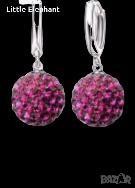 Сребърни висящи обеци топчета с кристали,dark pink/нови