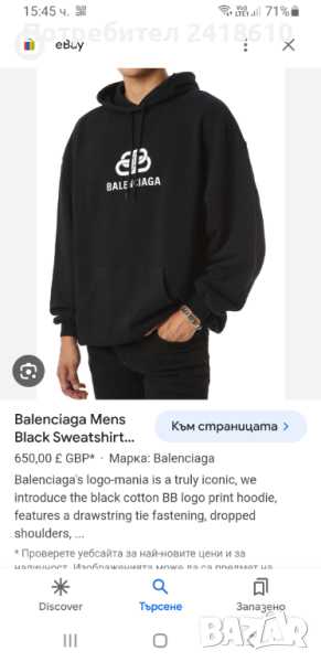 BALENCIAGA Mode Cotton Mens Hoodie Portugal Size М Unisex ОРИГИНАЛ! Суичер !