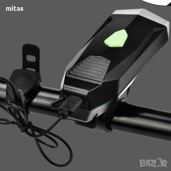 Универсален фар за велосипед 2 в 1 с клаксон.