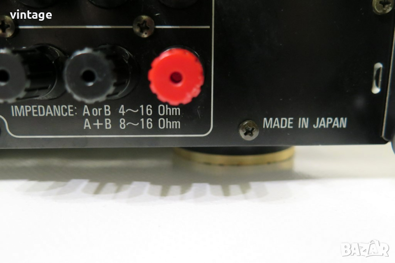 Транзисторен стерео усилвател, отличен технически, много добър външен вид. Корекции: bass 100 Hz/10 dB, treble 10 kHz/10 dB, loudness. Селектор за MM/MC дози. Много добър саунд! Приложените снимки са реални!