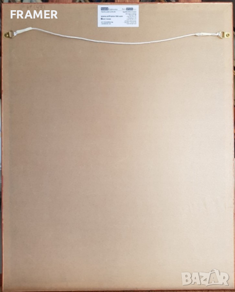 Творбата е перфектно оформена в стилна рамка. Със стъкло и паспарту.