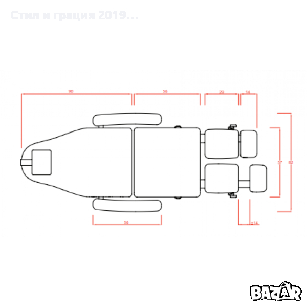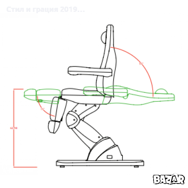 Хоризонтално раздалечени механични движения, поставка за крака (90 °) и регулиране на височината от газов механизъм.