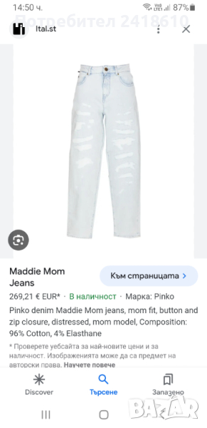 PINKO Maddie Denim Womens Size 26 НОВО! ОРИГИНАЛ! Дамски Дънки! Оригинални дамски дънки , нови!!