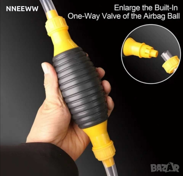 Ръчна помпа за гориво с маркуч КОД: NA445Дължина на маркуча: 180смРъчна помпа с маркучи за трансфер на течности.Работи на вакуумен принцип, функционира само в една посока.Маркуча в комплекта е PVC и е прозрачен с цел по-лесно да се следи преливането.Хубавото при помпата е, че не е необходимо захранване и може да се използва навсякъде, където има нужда от нея.Компактните и размери позволяват лесно пренасяне.Подходяща е за вода, масла, гориво(бензин, дизел) и др.