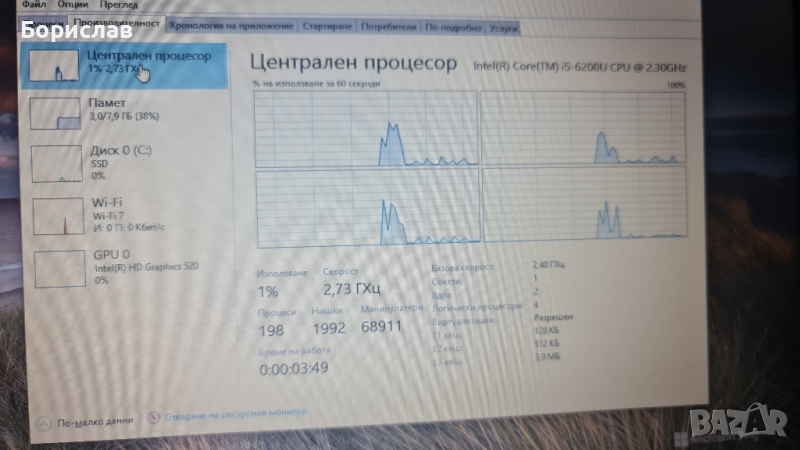 Процесор: Intel Core i5-6200U (2-ядрен, 2.30 - 2.80 GHz, 3MB кеш)