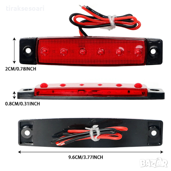 Червени светодиодни габарити за вашият товарен и лекотоварен автомобил с 6 LED диода
