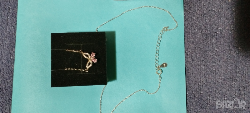 Сребърно дамско колие с пеперуда и бели камъни → Обява 44518643