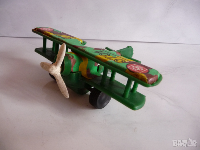 Стара играчка самолет. Зелен цвят.