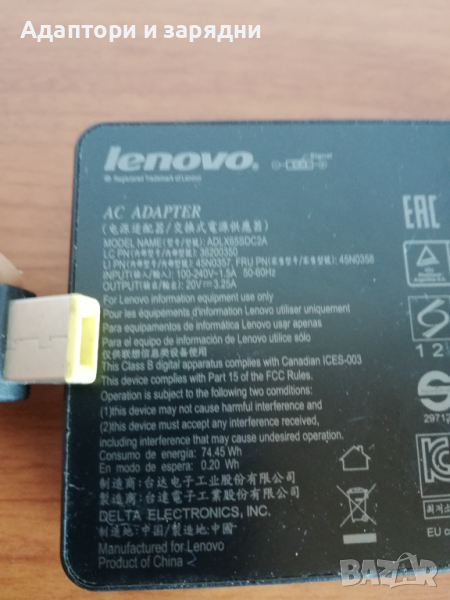 Адаптер за лаптоп Lenovo 20V 3.25A, снимка 1 - Лаптоп аксесоари - 44519593 Адаптер за лаптоп Lenovo 20V 3.25A, снимка 2 - Лаптоп аксесоари - 44519593 Адаптер за лаптоп Lenovo 20V 3.25A, снимка 3 - Лаптоп аксесоари - 44519593 1/3