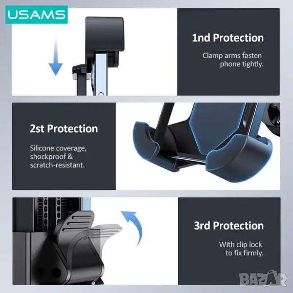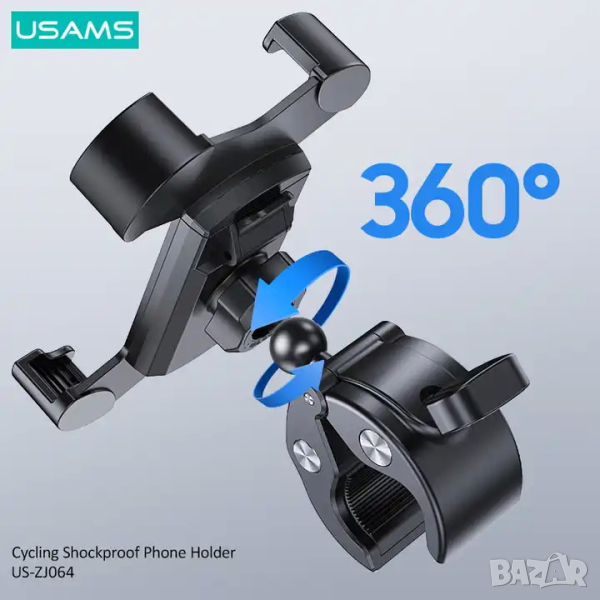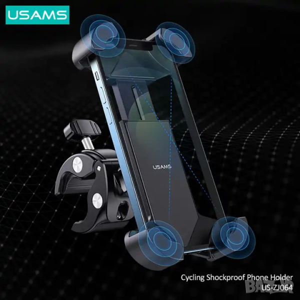 Здрава стойка за закрепване към велосипед, така вашия телефон ще бъде винаги под ръка. Много практична ако се нуждаете да ползвате навигация докато карате.