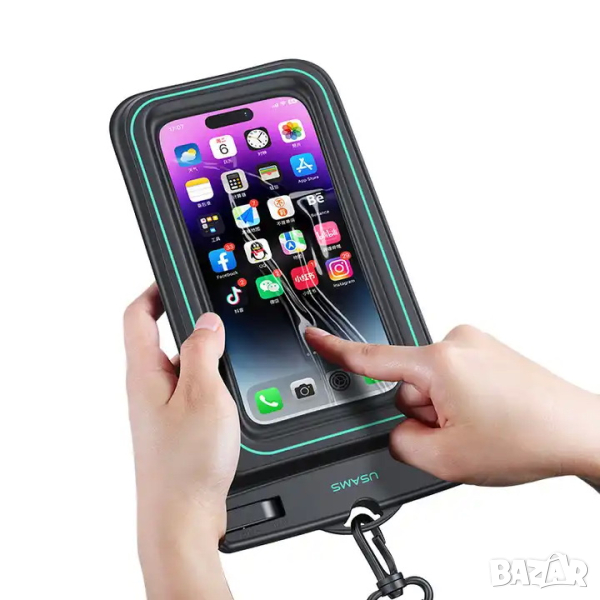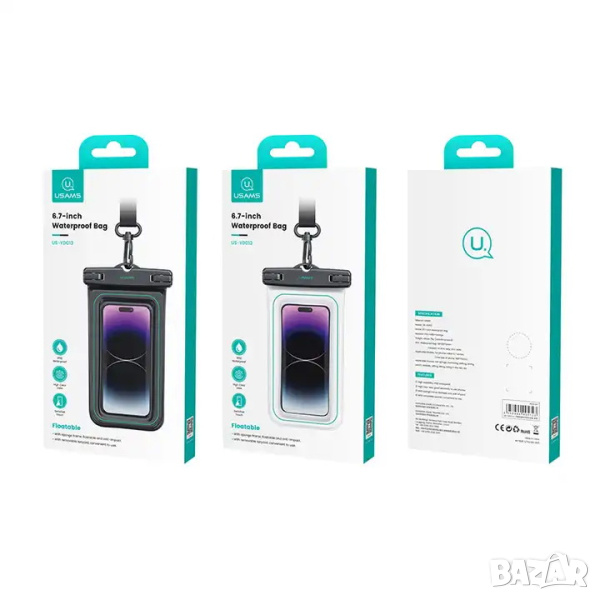 Калъфа може спокойно да се използва под вода, херметически затварящ се. Предпазва телефона от нараняване и намокряне с клас на водоустойчивост IP68. Напълно прозрачен го прави подходящ за подводни снимки. В свободно състояние, калъфа плува на повърхноста на водата.