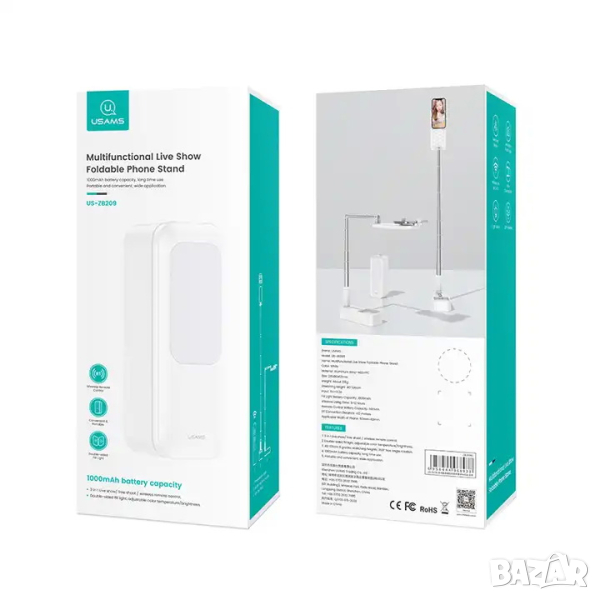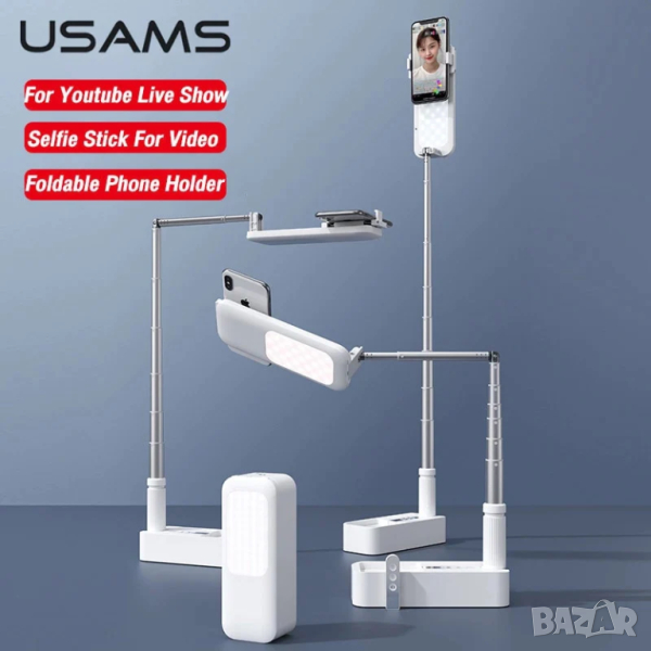 Преносимият държач за телефон USAMS е лек и издръжлив аксесоар за телефони. Този държач се предлага с безжична стойка за дистанционно управление и LED запълваща светлина, идеални за използване по време на видео на живо или поточно предаване на живо. С този държач ще имате надежден инструмент за излъчване на платформи като YouTube.