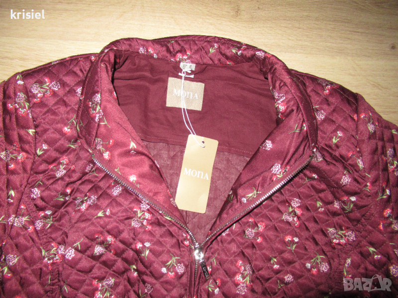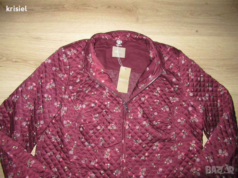 Якето е ново,с етикет.Номер 48-2XL.Много хубаво пролетно моделче.Супер мека и приятна материя. В красив десен.С два джоба отстрани.Размерите са:дължина-69см,гръдна-61см,ханш-63см,талия-58см