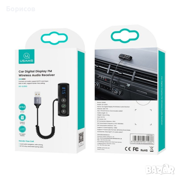 Нов и оригинален Комплект за свободни ръце Usams US-SJ503 с FM предавател. Гаранция → Обява 44525607