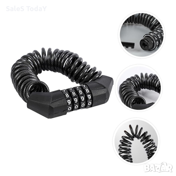 1851811- кодУниверсално заключващо устройство за велосипедОсигурява сигурност на Вашият велосипедДебело стоманено въже с гумена обвивка.НАЧИН НА УПОТРЕБА:Първоначален код за отключване: 0000.След първоначалното отключване на устройството, завъртете пластмасовия пръстен на 90º по посока на часовниковата стрелка, както е посочено на пръстена.Изберете новия четирицифрен код като завъртите пръстените с посочени числа на тях.След въвеждането на новия код, завъртете пластмасовия пръстен обратно, в първоначална позиция.При следващо отключване на устройството, използвайте новия създаден от Вас код.Запомнете новия код, защото няма връщане на оригиналните настройки.