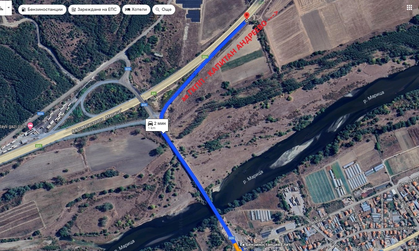 Търговският обект е разположен на главна пътна артерия Е80 и бул. Марица 1 и в непосредствена близост до пътен възел от гр. Любимец до автомагистрала Марица, с разстояние 450 метра. Стратегическата локация на обекта може перфектно да обслужва влизащите и излизащи МПС както от града, така и от двете посоки на пътуващите по автомагистрала Марица .